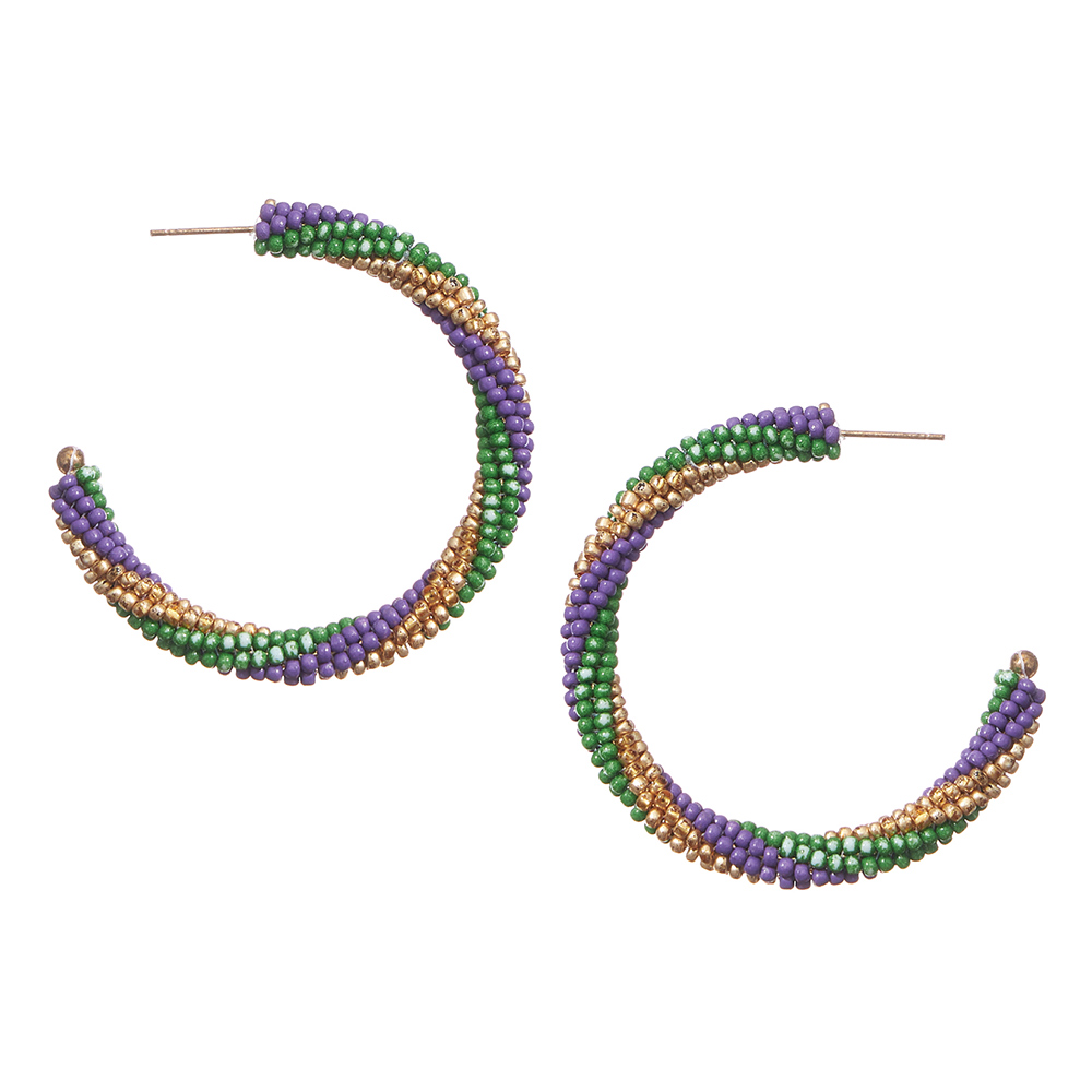 Mardi Gras Beaded Hoop Earrings