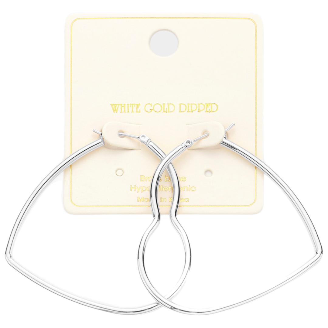 White Gold Dipped Heart Hoop Pin Catch Earrings