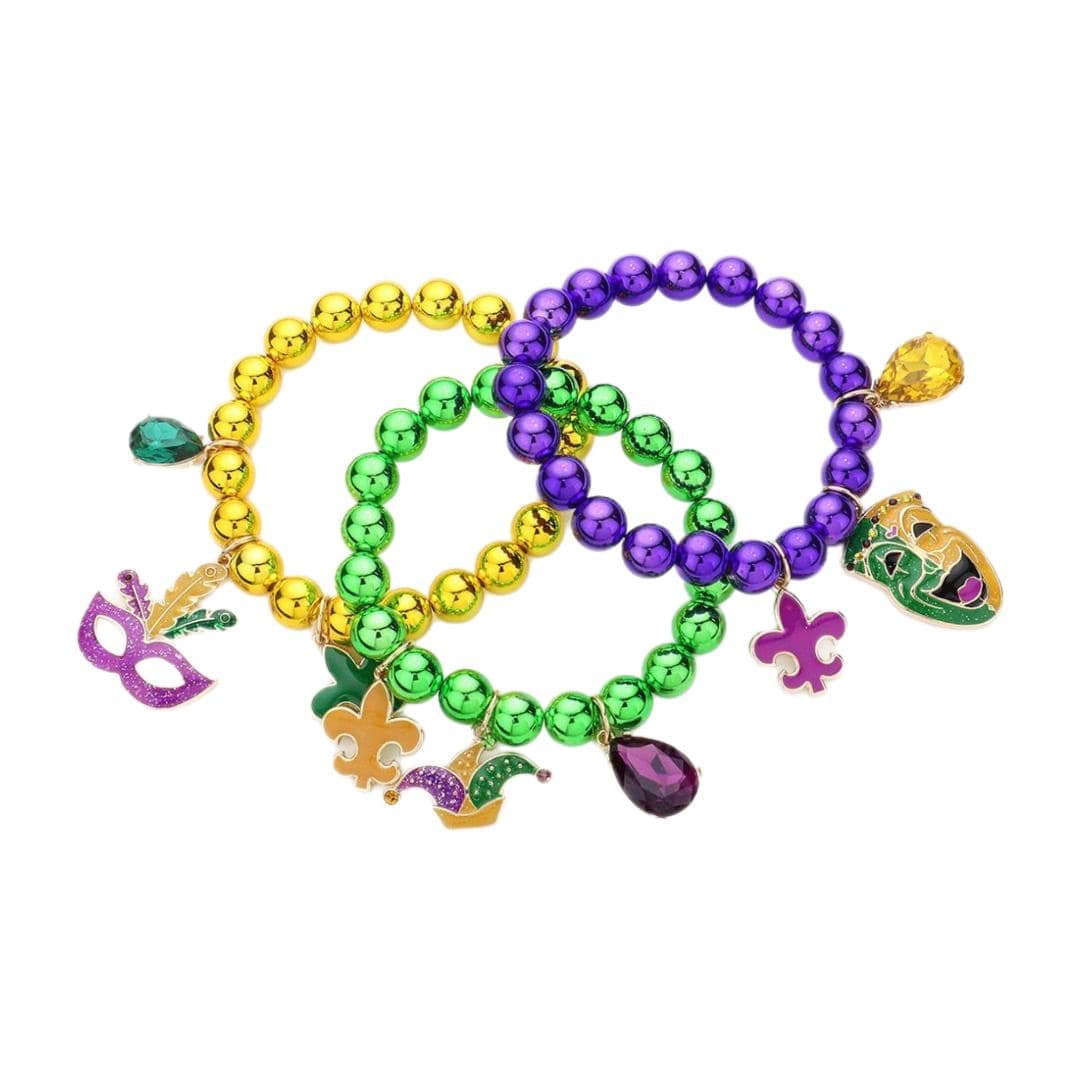 • Felt Back Mardi Gras Beaded Dangle Earrings