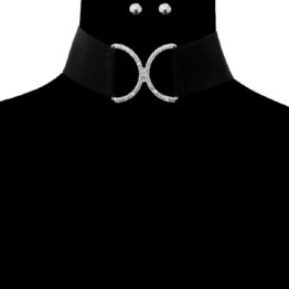 Chic Choker Necklace with Clear Stones Stud Earrings